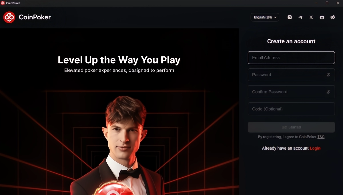 Enter your CoinPoker log-in details. If you are a new player, create your account, then log in.