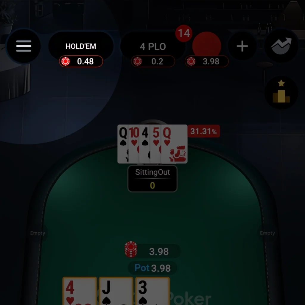 - – Juega más manos con más confianza: Es una buena práctica jugar manos selectivas en el póquer. Con EV Cashout, puedes aprovechar para jugar más manos.