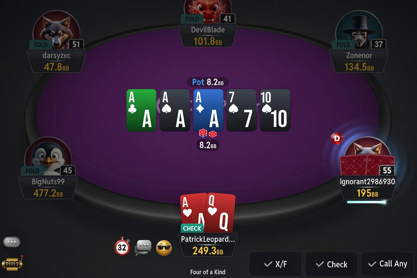 Grâce à nos politiques strictes d’intégrité du jeu, nous garantissons une plateforme professionnelle, sécurisée et fiable pour toutes les parties de poker en argent réel, à tout moment.