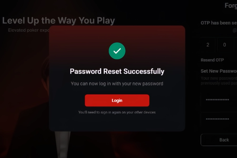 After you open the CoinPoker app, click on “Forgot Password?” above the Login button. This is the same on mobile devices and computers.