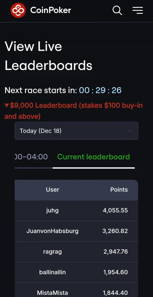 6. Get Your Rewards: When a 4-hour race ends, payouts are credited directly to winners’ CoinPoker accounts within 72 hours.