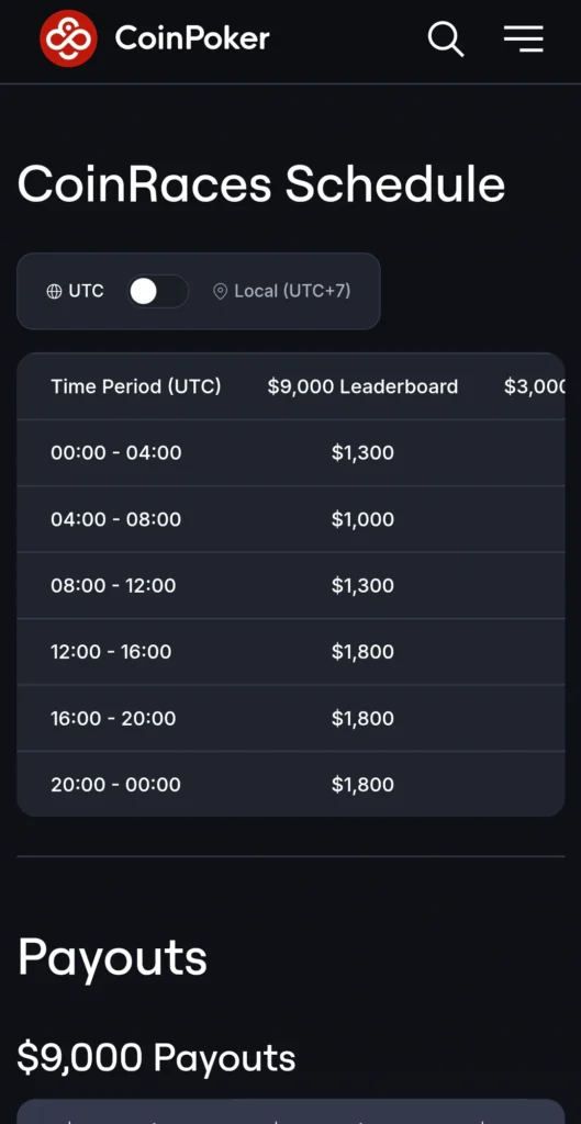 - Payouts: Winners receive prizes directly to their CoinPoker accounts within 72 hours after each CoinRace ends.