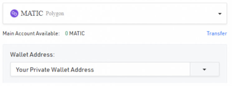 - Input your Polygon’s private wallet address (NOT CoinPoker’s address. Please note that CoinPoker does not accept Polygon/MATIC, ETH, USDT deposits from exchanges).
