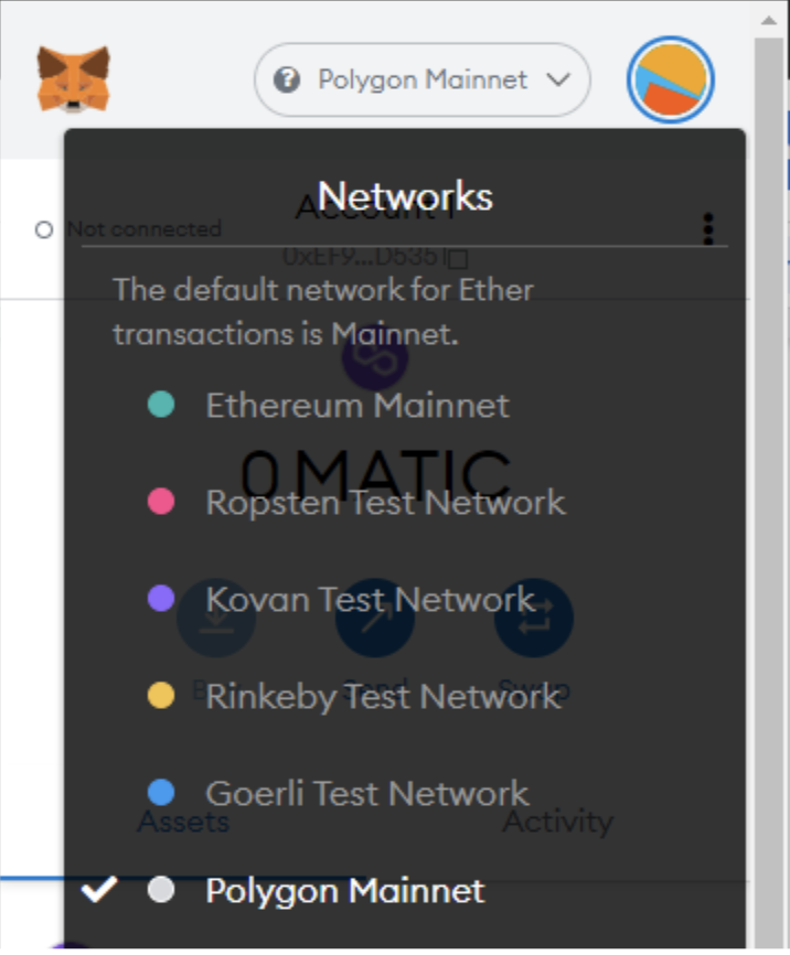 - To switch to the Polygon network, click on “Ethereum Mainnet” at the top of the MetaMask window.