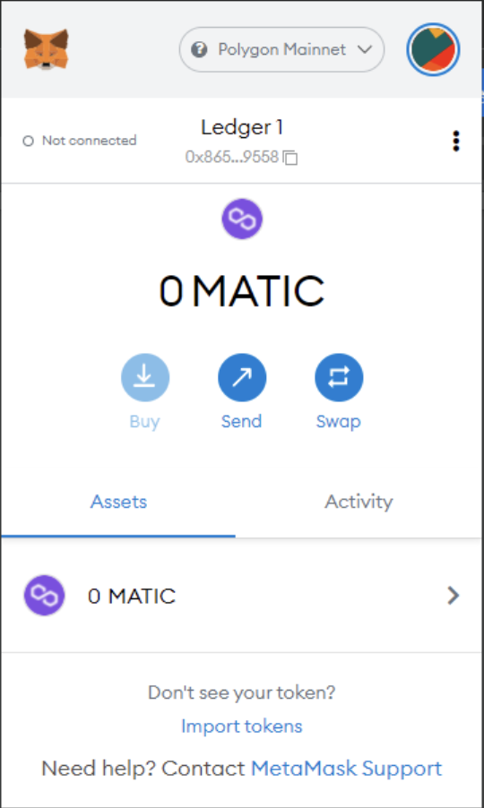 5. You have now connected to the Polygon / MATIC mainnet with your MetaMask Wallet!