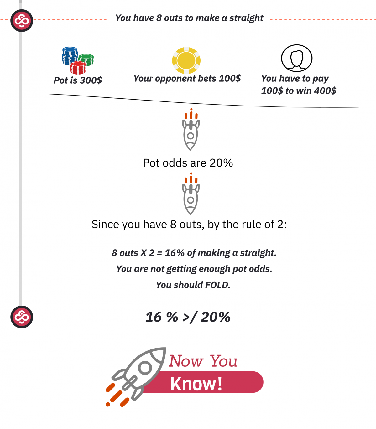 That is exactly what we have here. It’s an explanatory infographic to help you understand the steps needed for successful pot odds calculation.