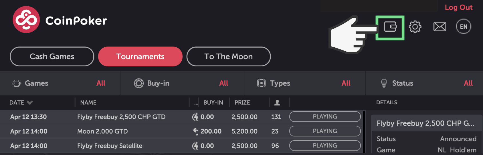 코인포커에서는 커뮤니티를 위해 모든 것과 절차를 더 편리하게 만드는 것을 중요하게 생각합니다. 그래서 ETH, CHP, USDT뿐만 아니라 비트코인(BTC)도 사용할 수 있도록 지원하고 있습니다. 코인포커에 가입하고 BTC를 입금하는 방법은 아주 간단합니다!