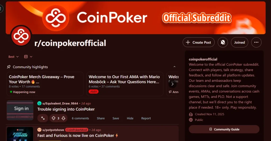 CoinPoker’s Official Reddit page hosted Mario Mosböck’s AMA at the end of November, and is now handing out exclusive merch from December 1st to December 15th.
