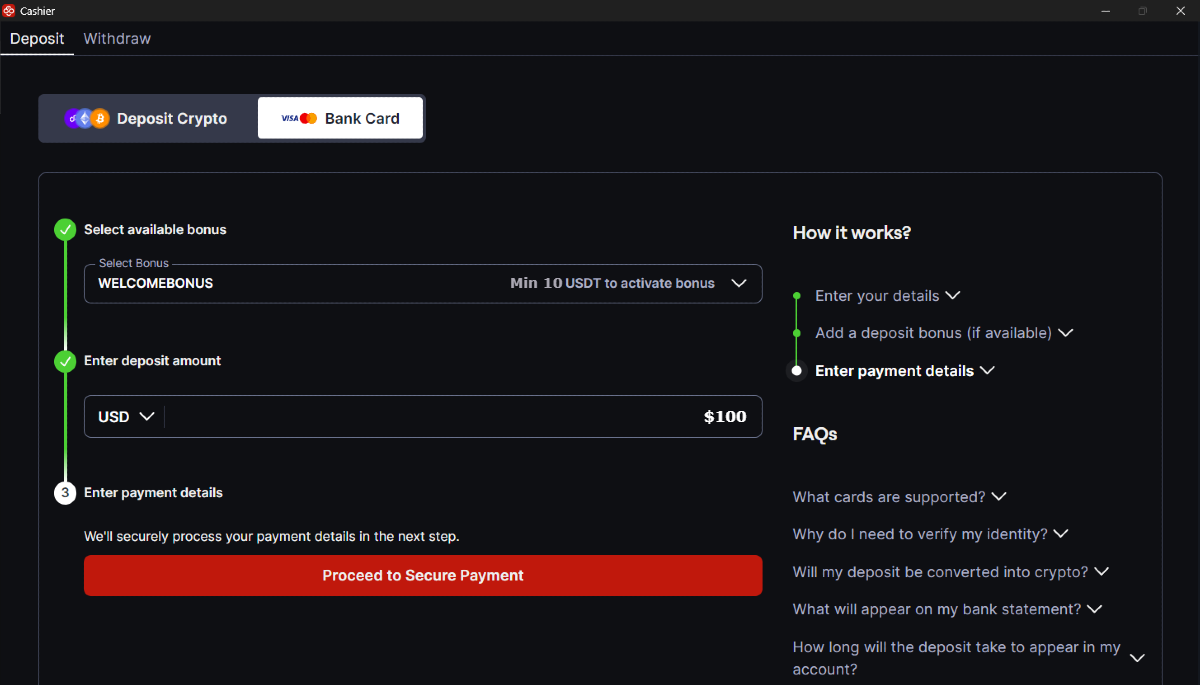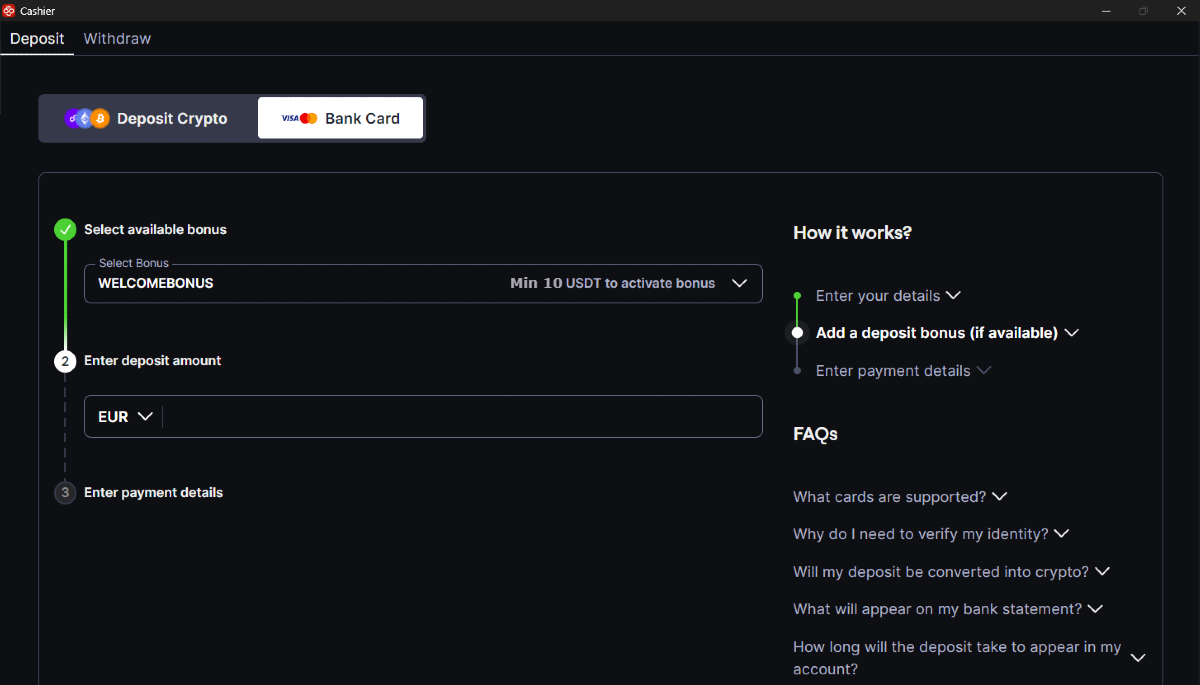 Banka kartınızı kullanarak CoinPoker’a para yatırmak için aşağıdaki talimatları izleyin.