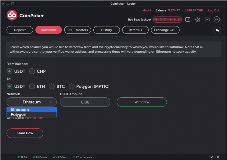 Withdrawal process in Coin Poker is quite simple and doesn’t require more than a few minutes (depending on the time of the day the withdrawal is performed) to withdraw to your personal wallet .
